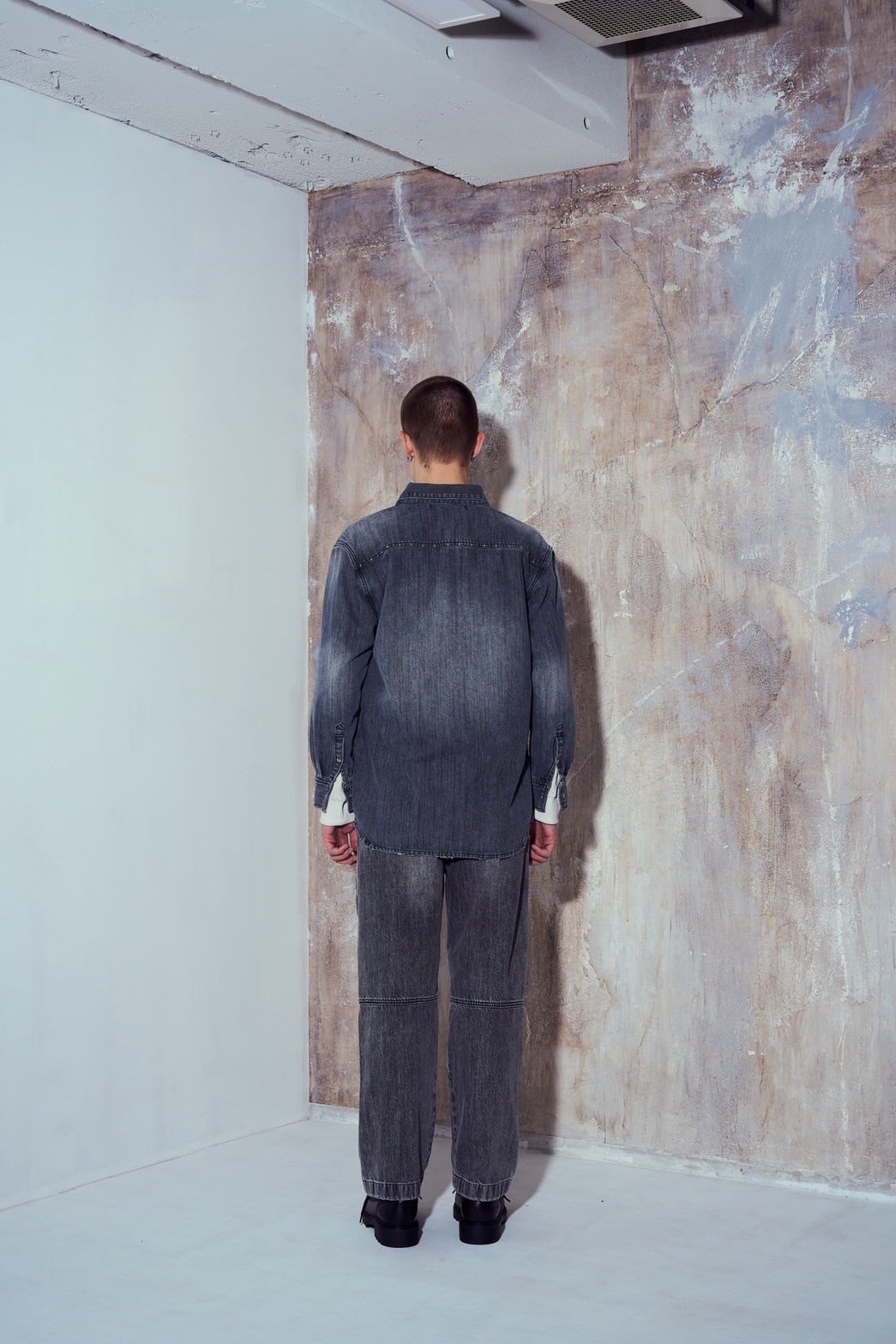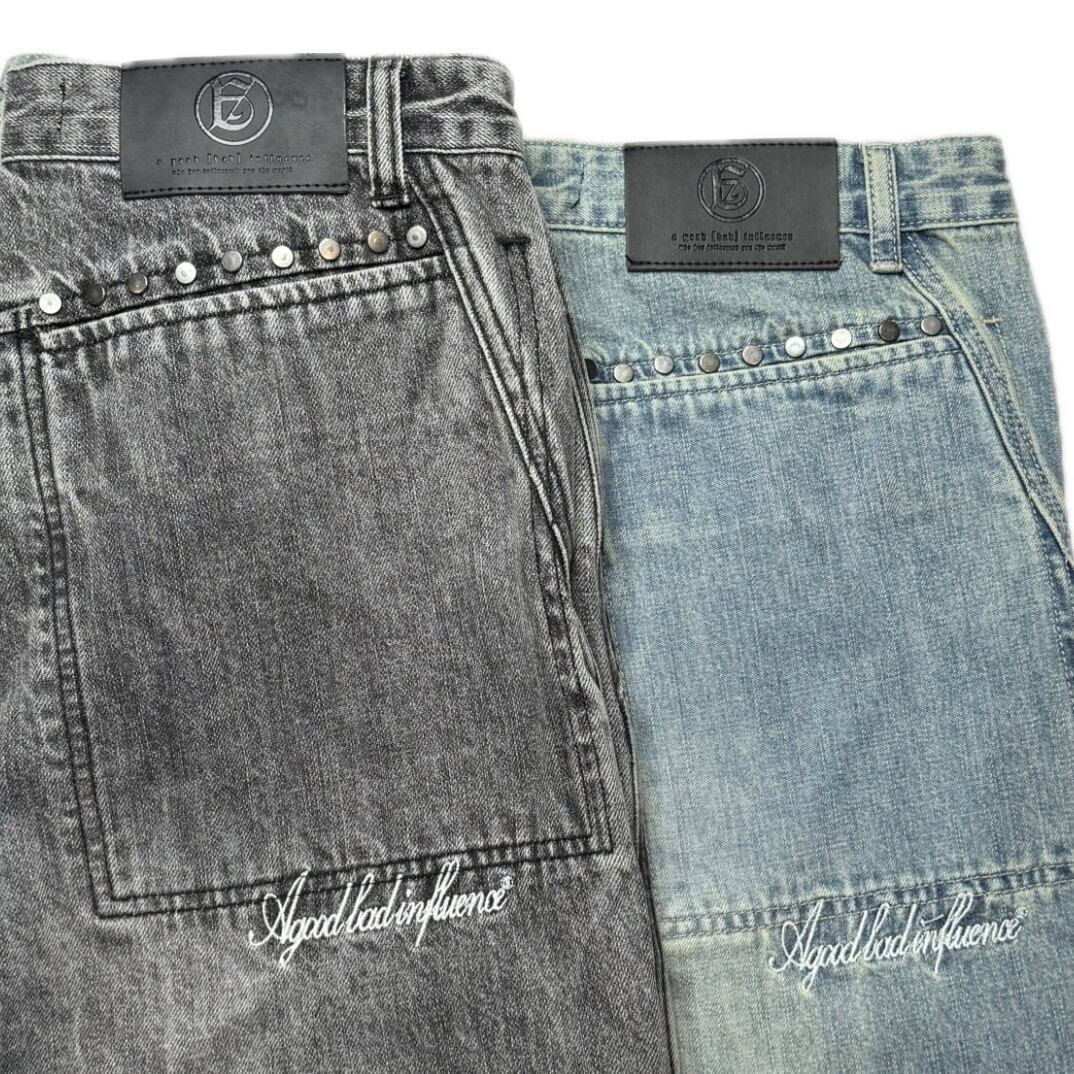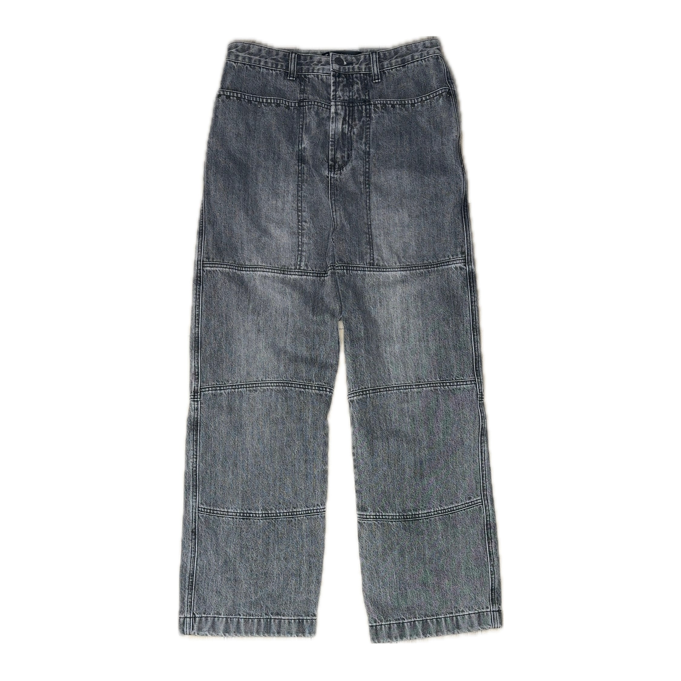 STUDSED SWITCH DENIM PANTS - BLACK