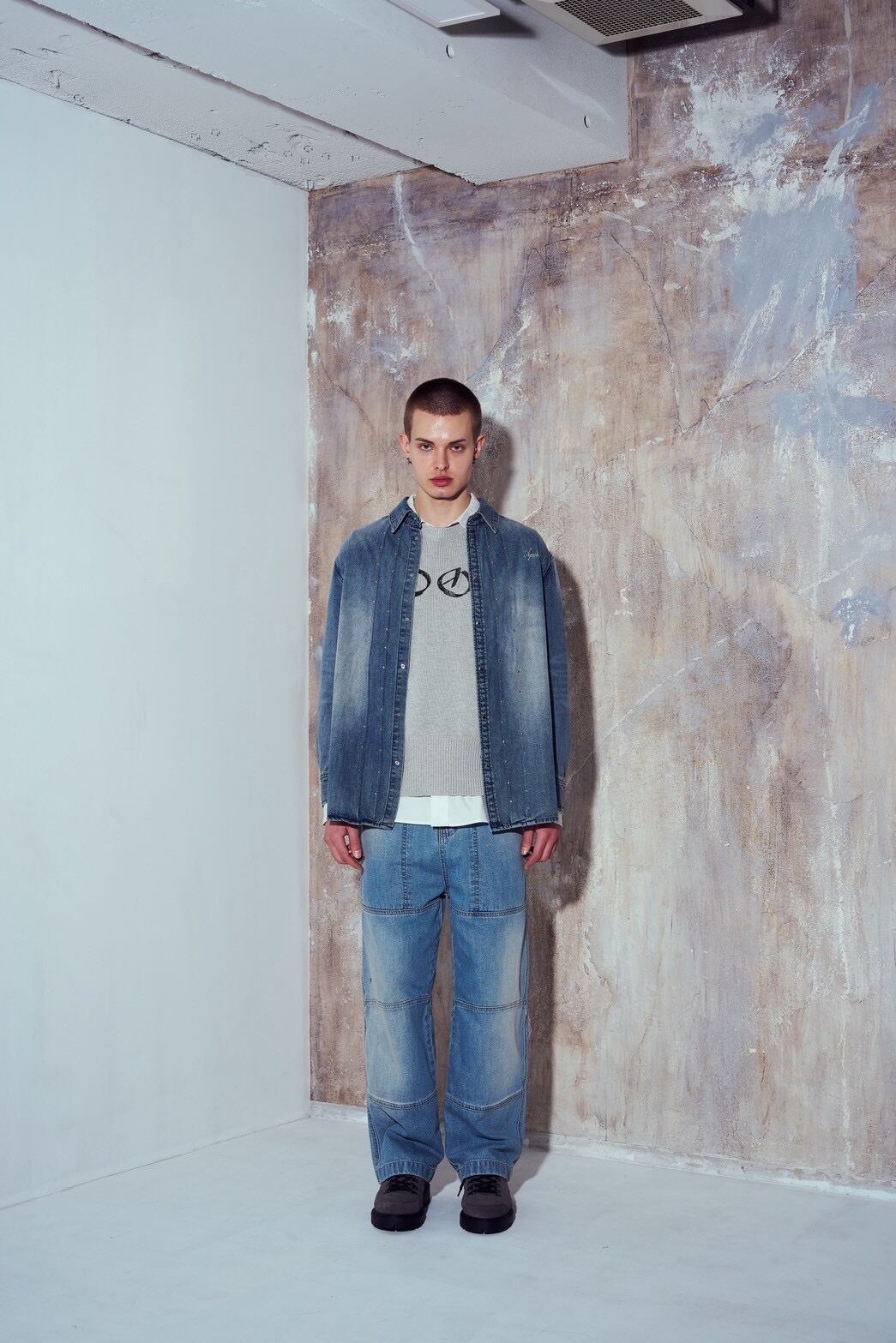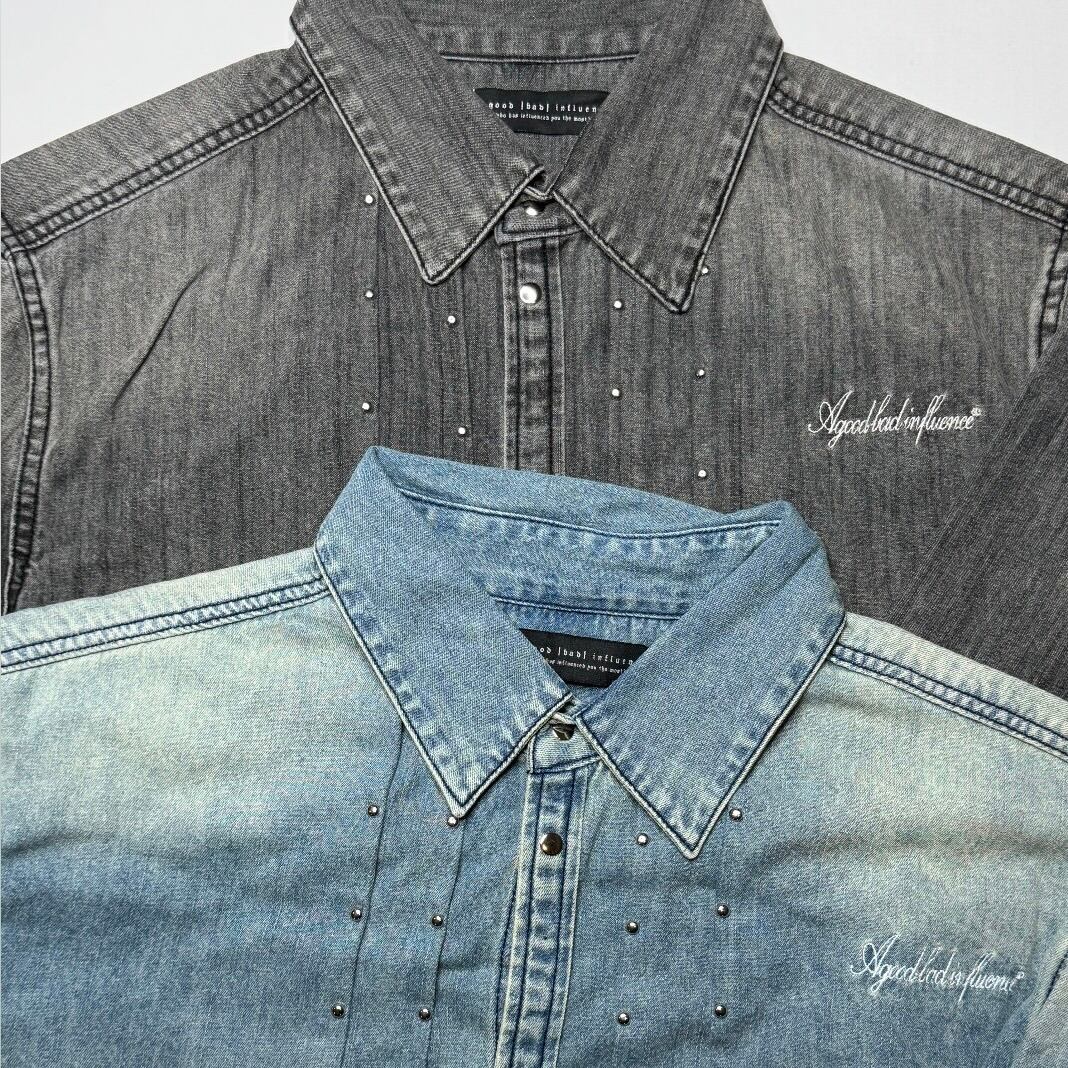 STUDSED DENIM SHIRT - BLUE