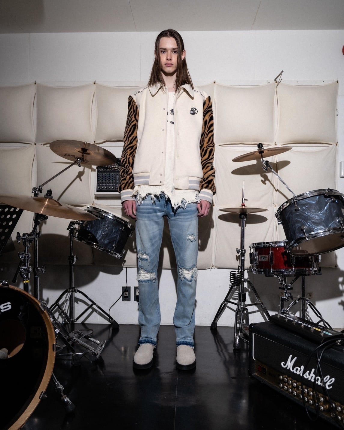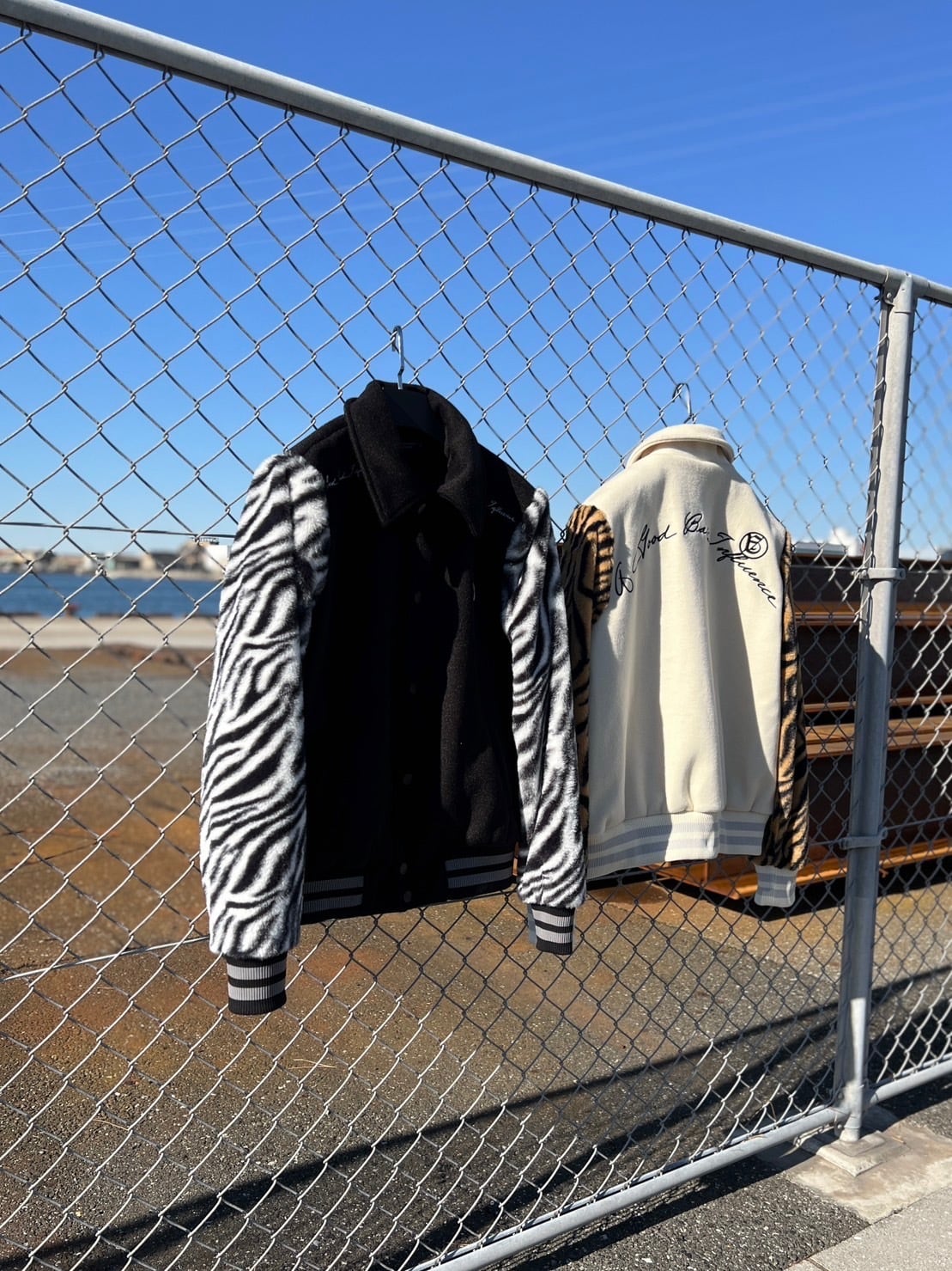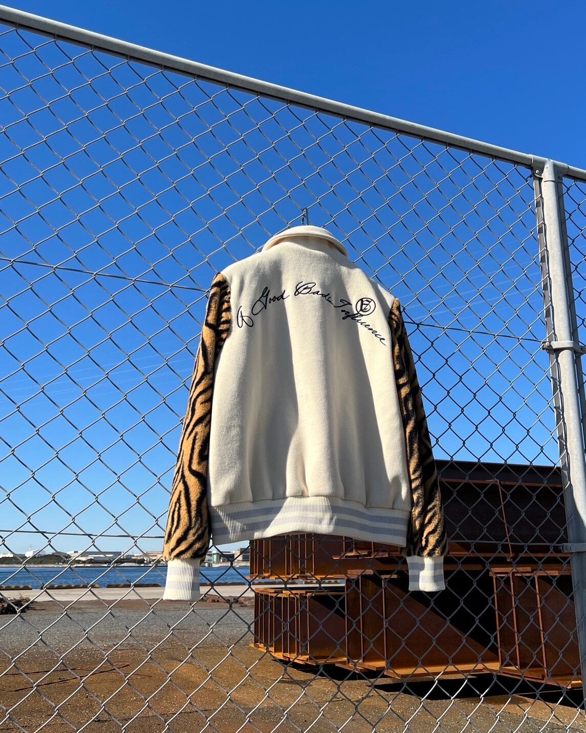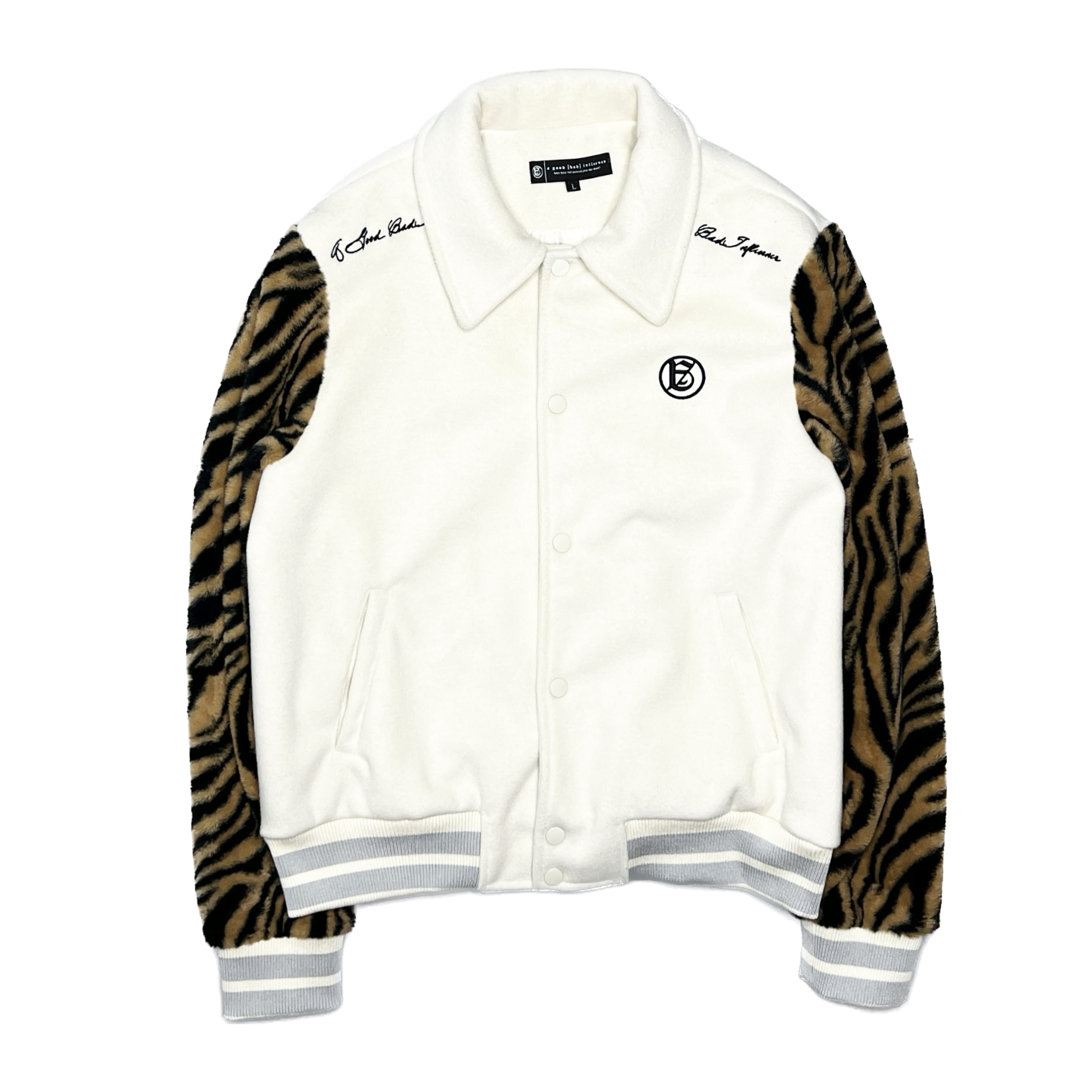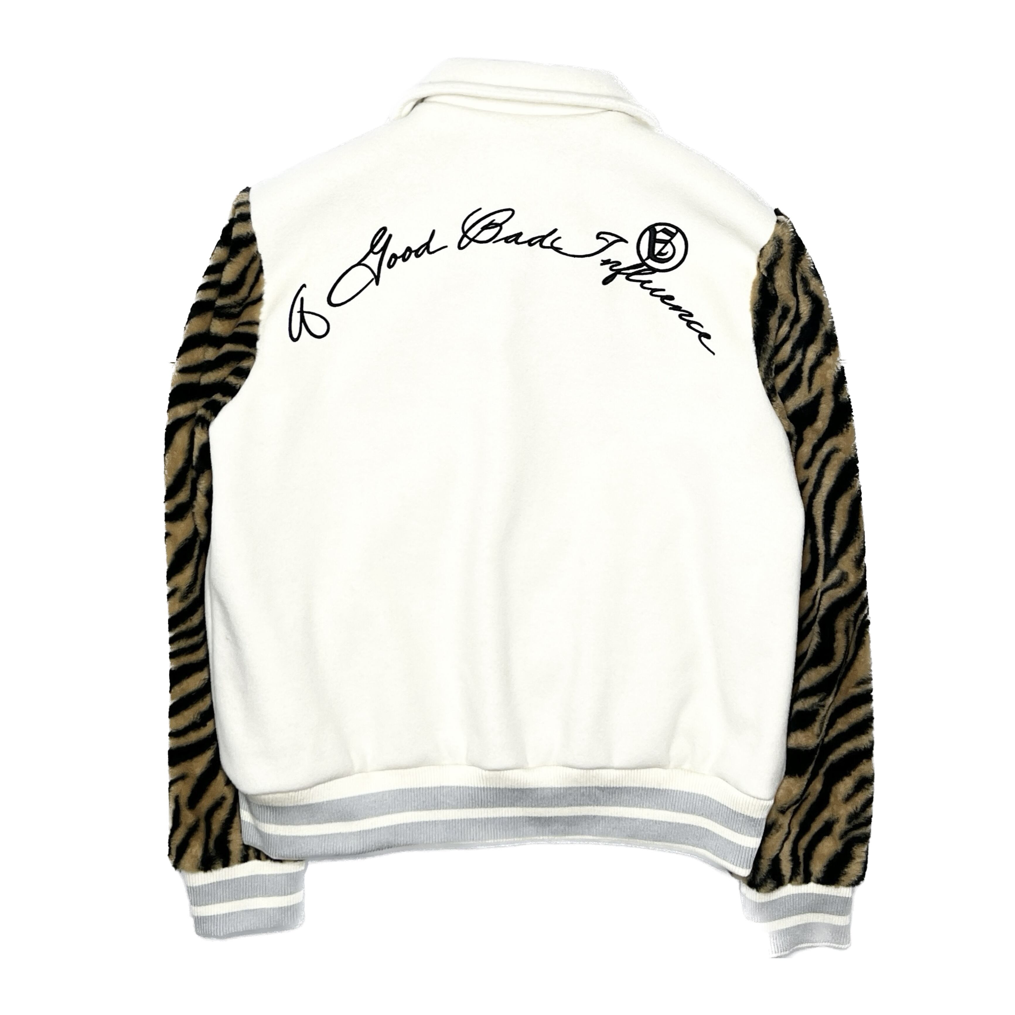 A GOOD BAD INFLUENCE - Zebra Sleeve Letterman Jacket (WHT)